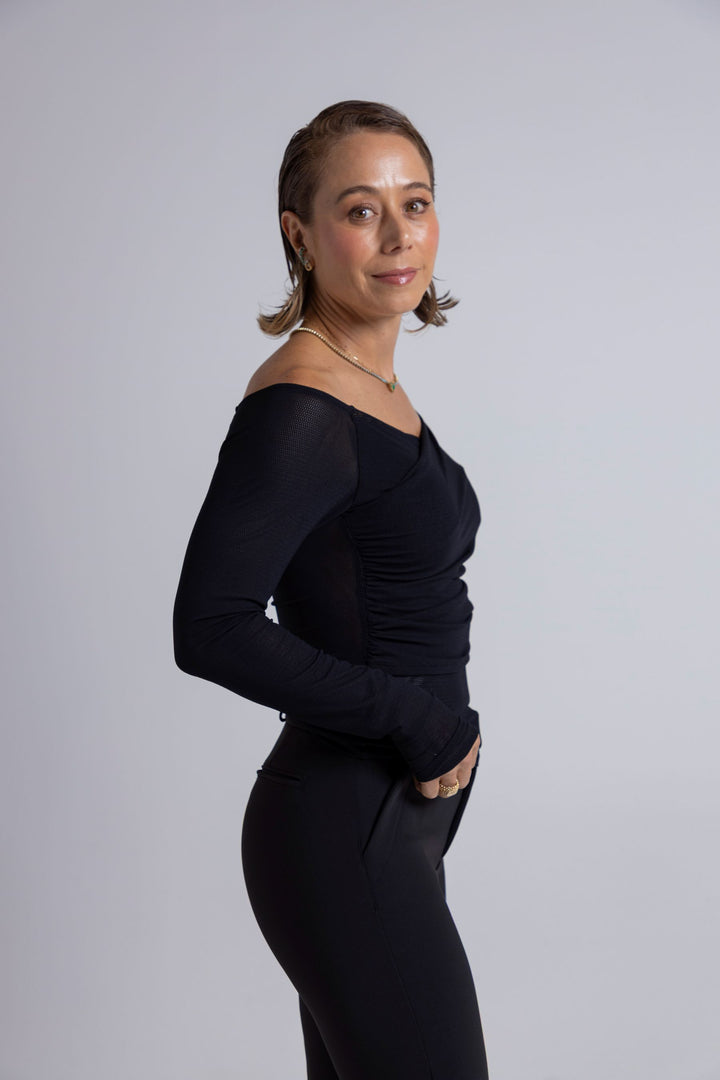 La blusa Astral destaca por su diseño drapeado que aporta elegancia y sofisticación a cualquier outfit. Su ajuste perfecto realza la figura, combinando estilo y comodidad para una apariencia impecable en cada ocasión.