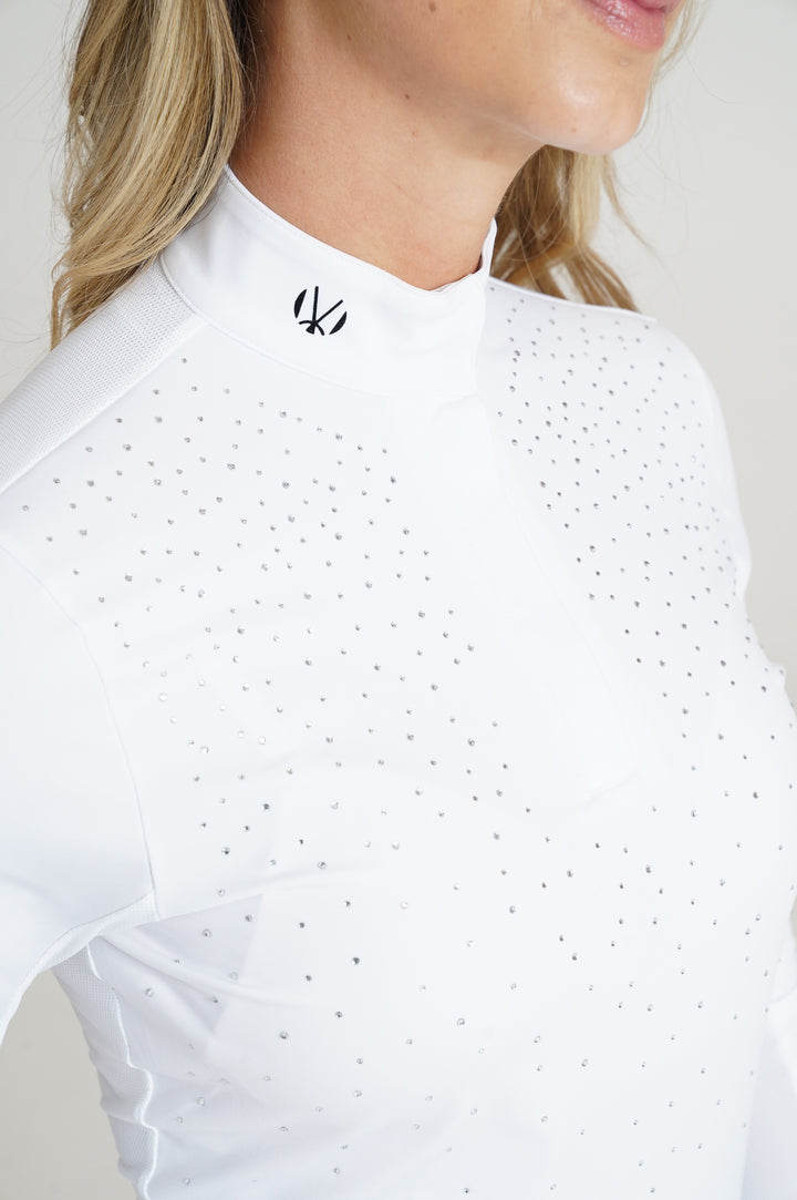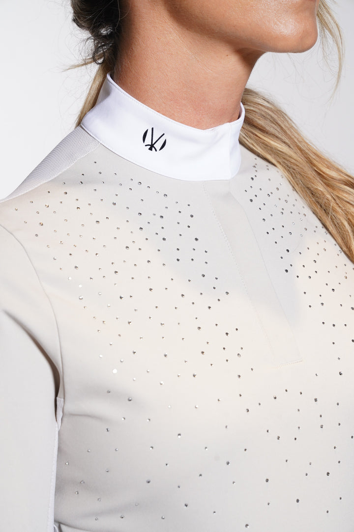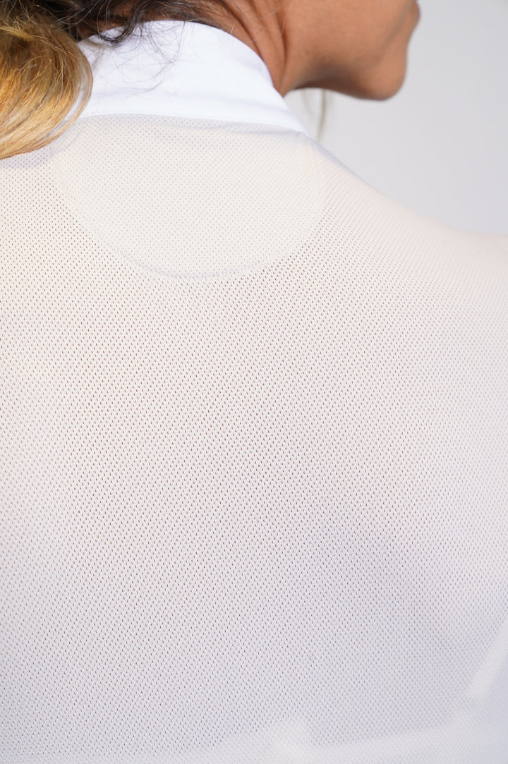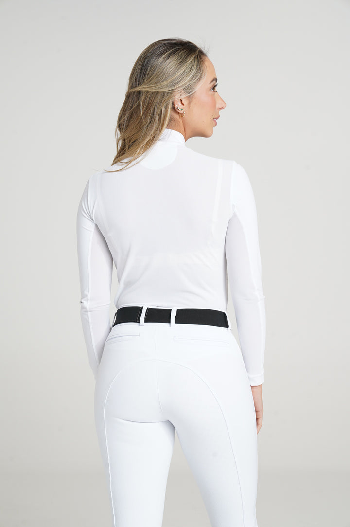 Camiseta manga larga de cuello alto , elaborada en tela con alta tecnología que provee flexibilidad, confort y protección al jinete durante la competencia.