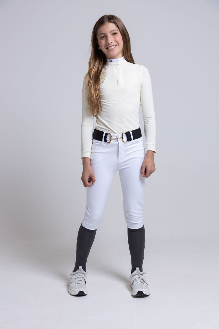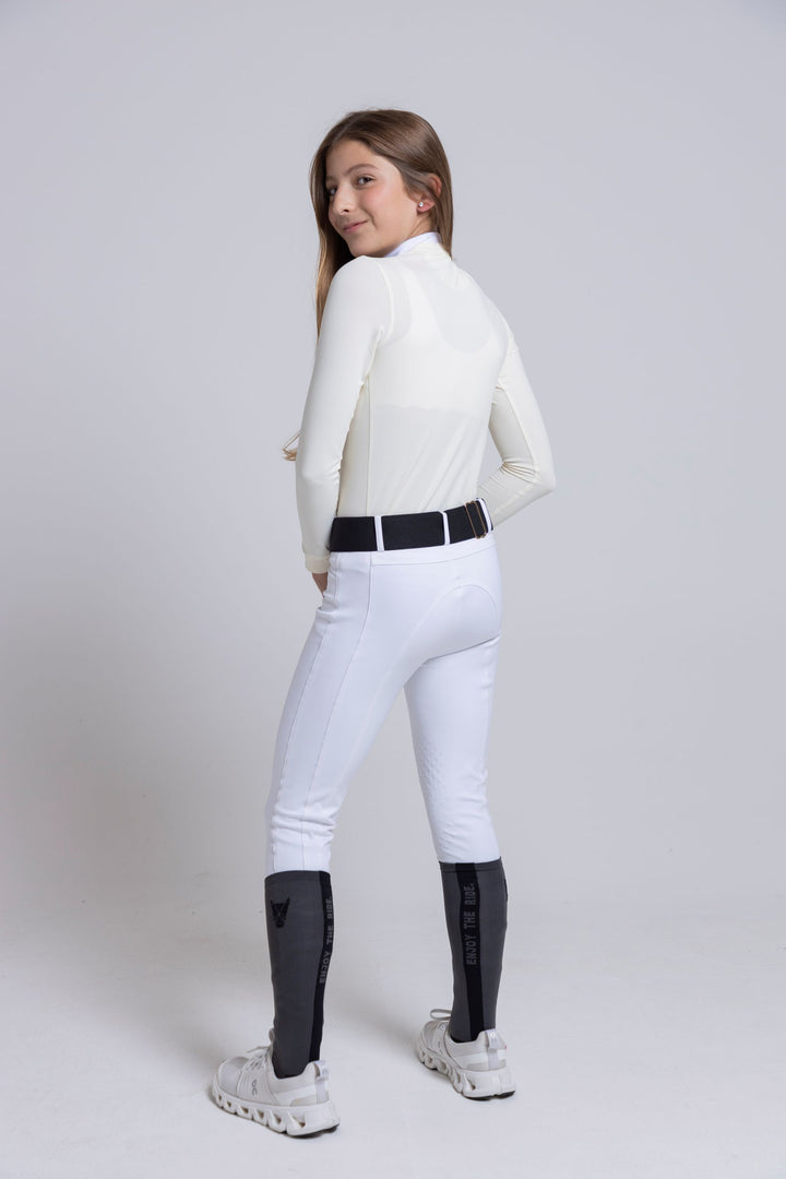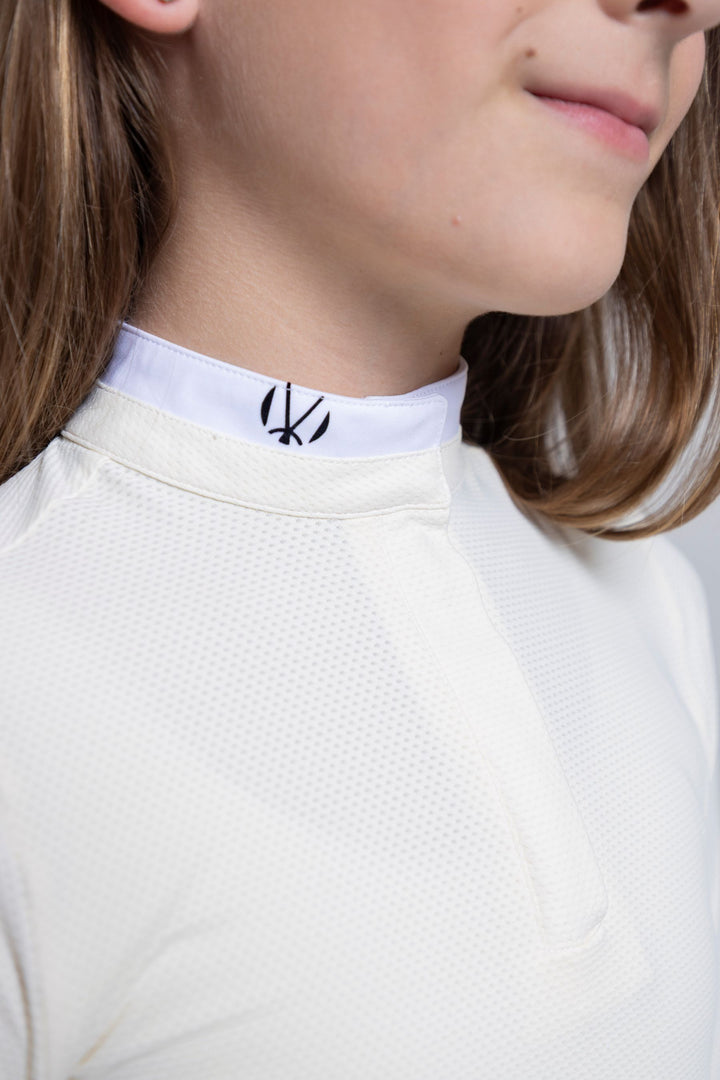 Camiseta manga corta de cuello alto, elaborada en tela con alta tecnología que proporciona flexibilidad, comodidad y protección al jinete durante los entrenamientos.