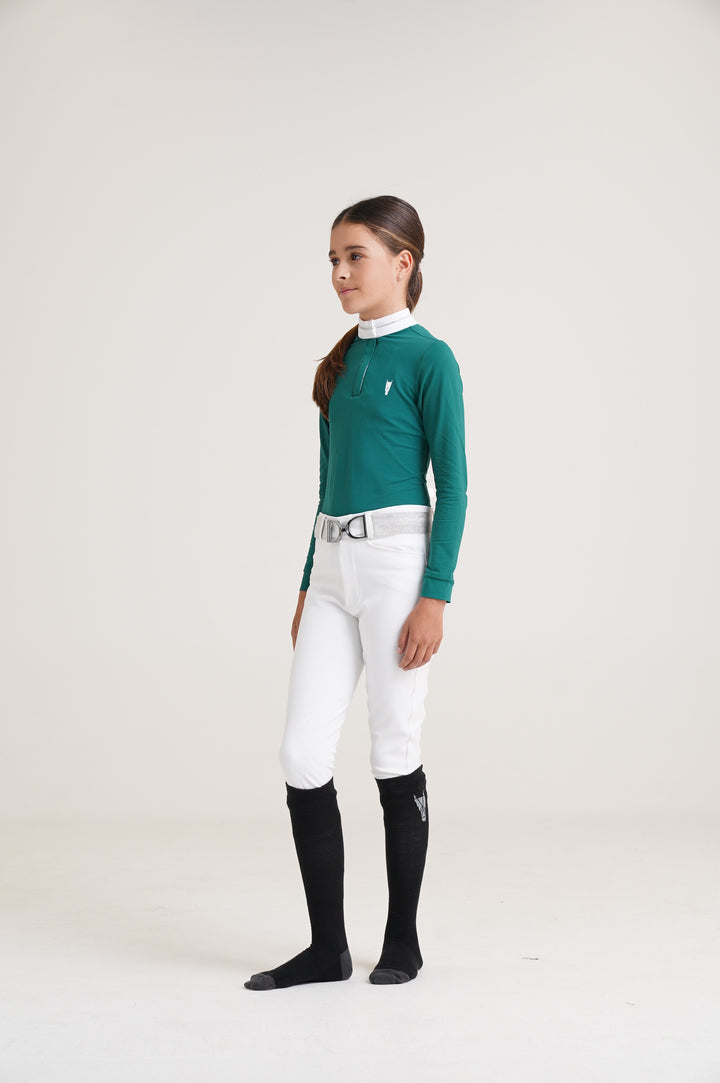 Camiseta manga corta de cuello alto, elaborada en tela con alta tecnología que proporciona flexibilidad, comodidad y protección al jinete durante los entrenamientos.