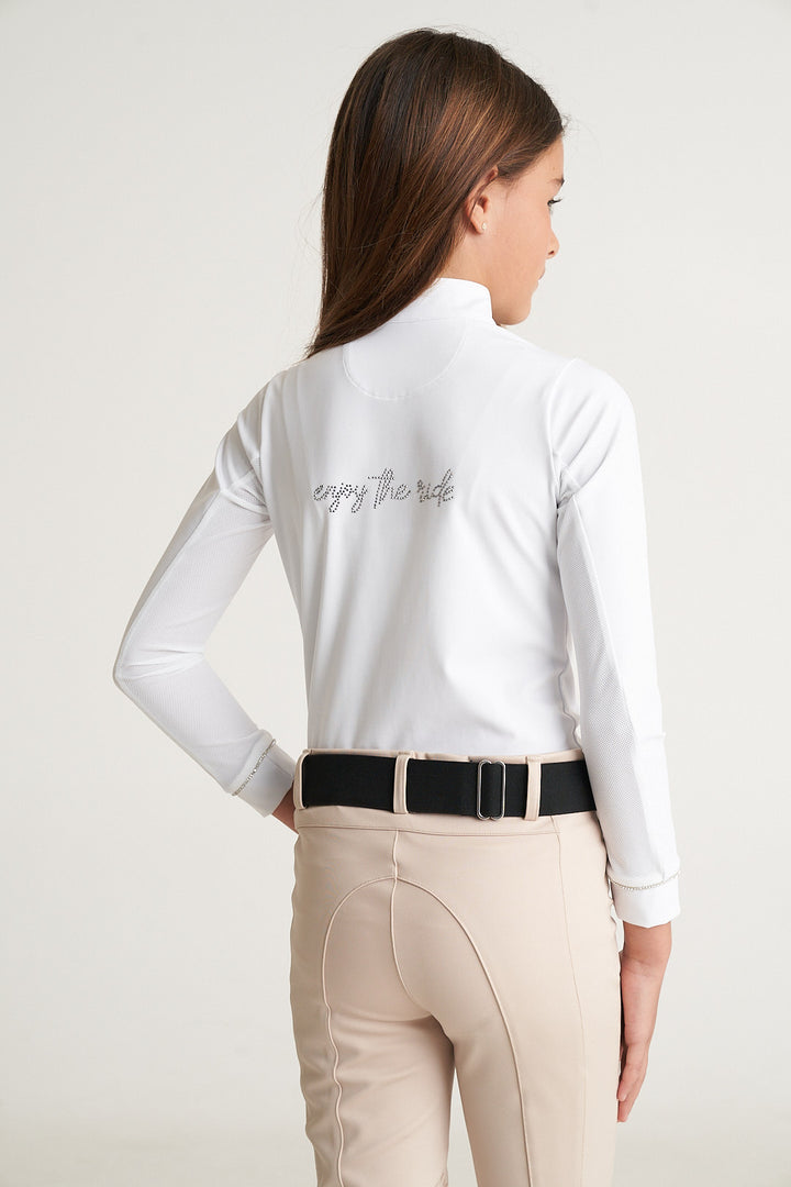 Camiseta manga corta de cuello alto, elaborada en tela con alta tecnología que proporciona flexibilidad, comodidad y protección al jinete durante los entrenamientos.