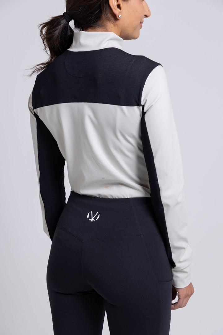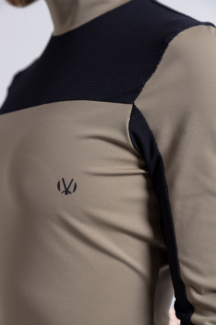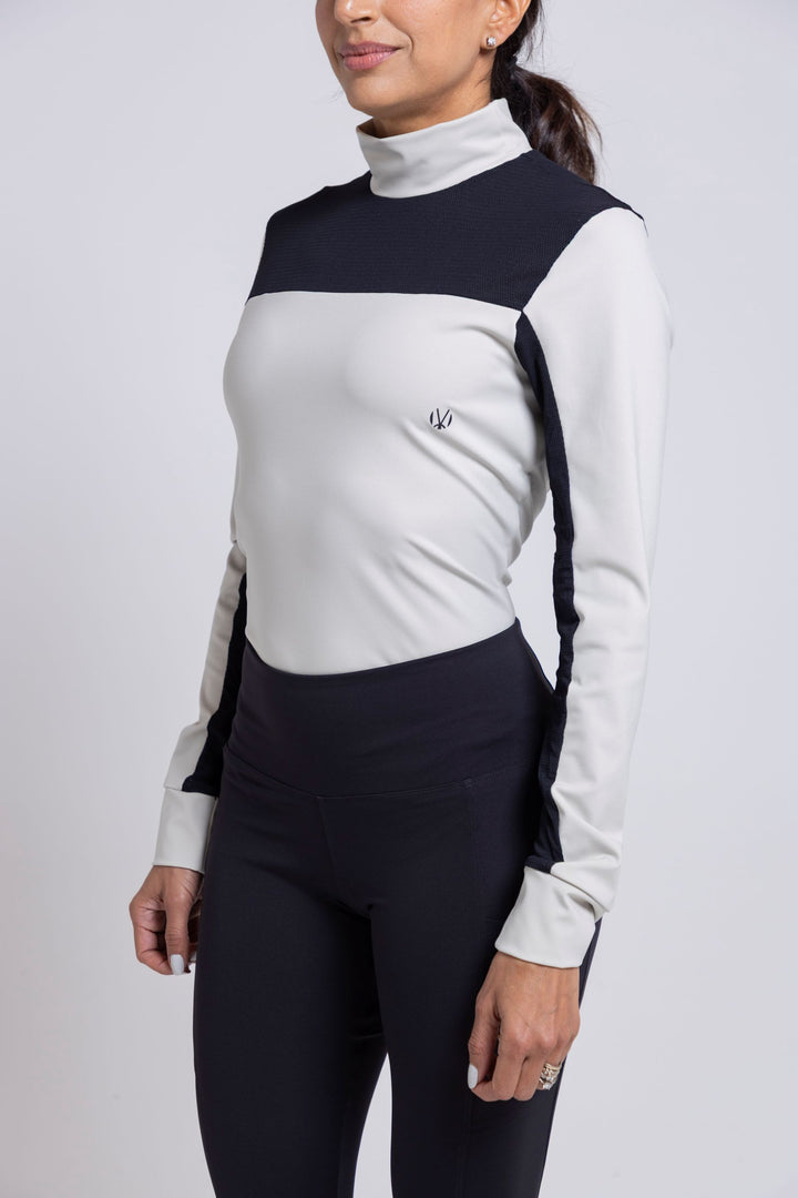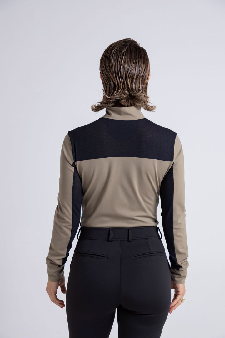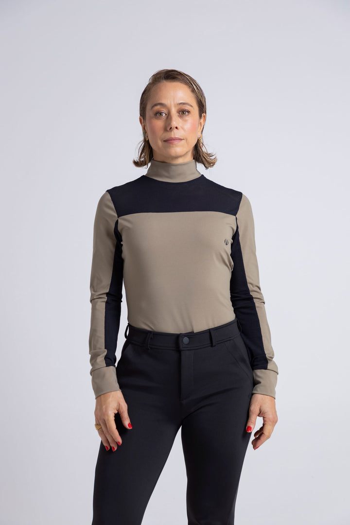 Camiseta manga larga de cuello alto , elaborada en tela con alta tecnología que provee flexibilidad, confort y protección al jinete durante sus entrenamientos.