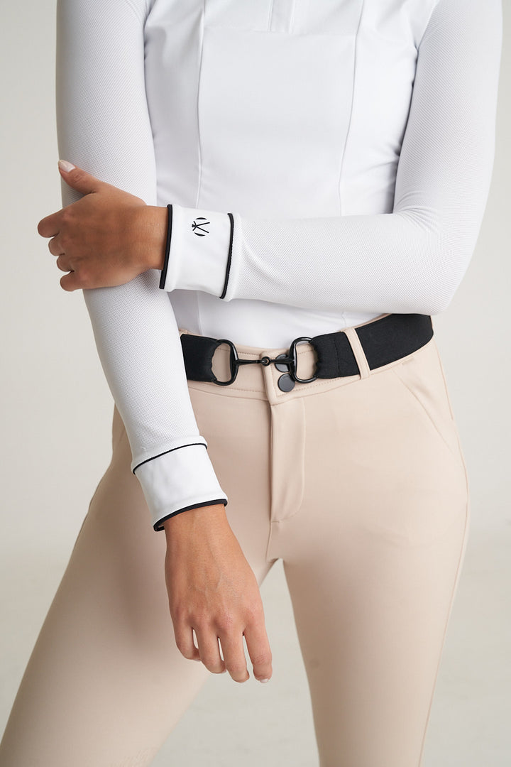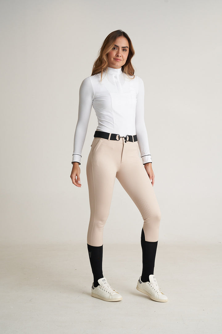 Camiseta manga larga de cuello alto, elaborada en tela con alta tecnología que proporciona flexibilidad, comodidad y protección al jinete durante los entrenamientos.