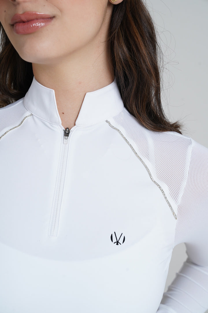 Camiseta manga larga de cuello alto , elaborada en tela con alta tecnología que provee flexibilidad, confort y protección al jinete durante la competencia.