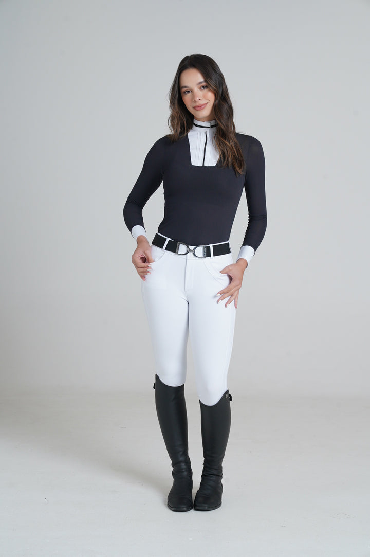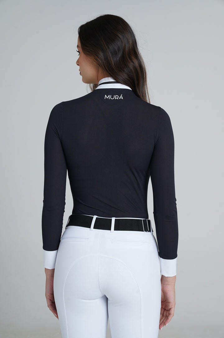 Camiseta manga larga de cuello alto , elaborada en tela con alta tecnología que provee flexibilidad, confort y protección al jinete durante la competencia.