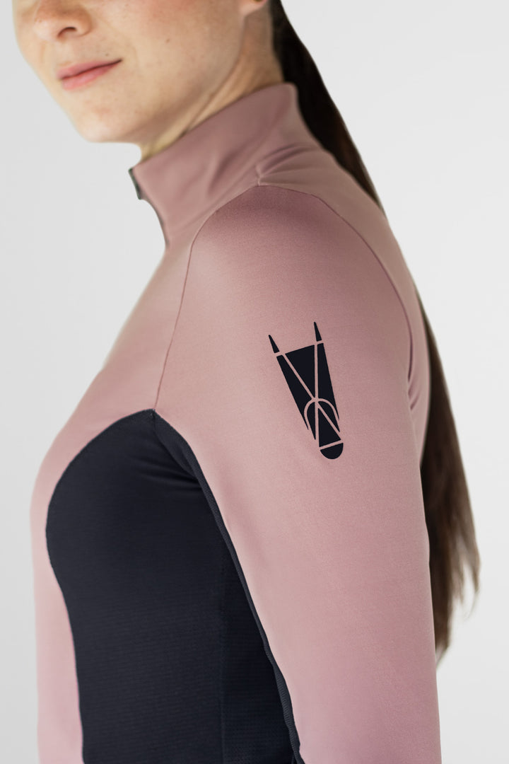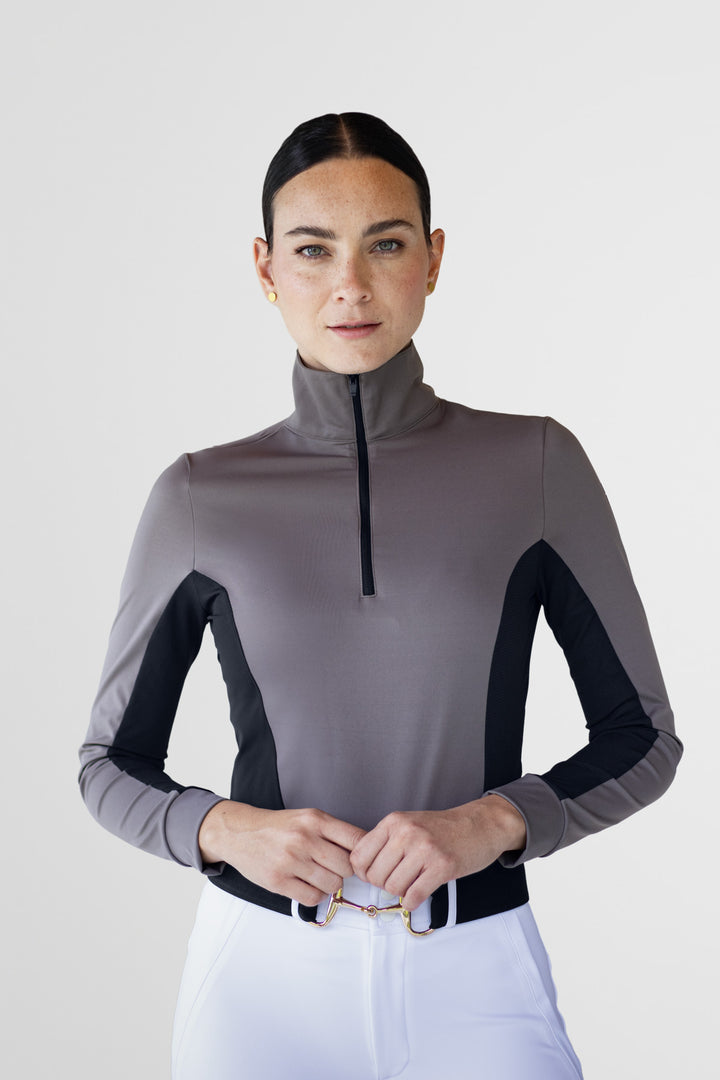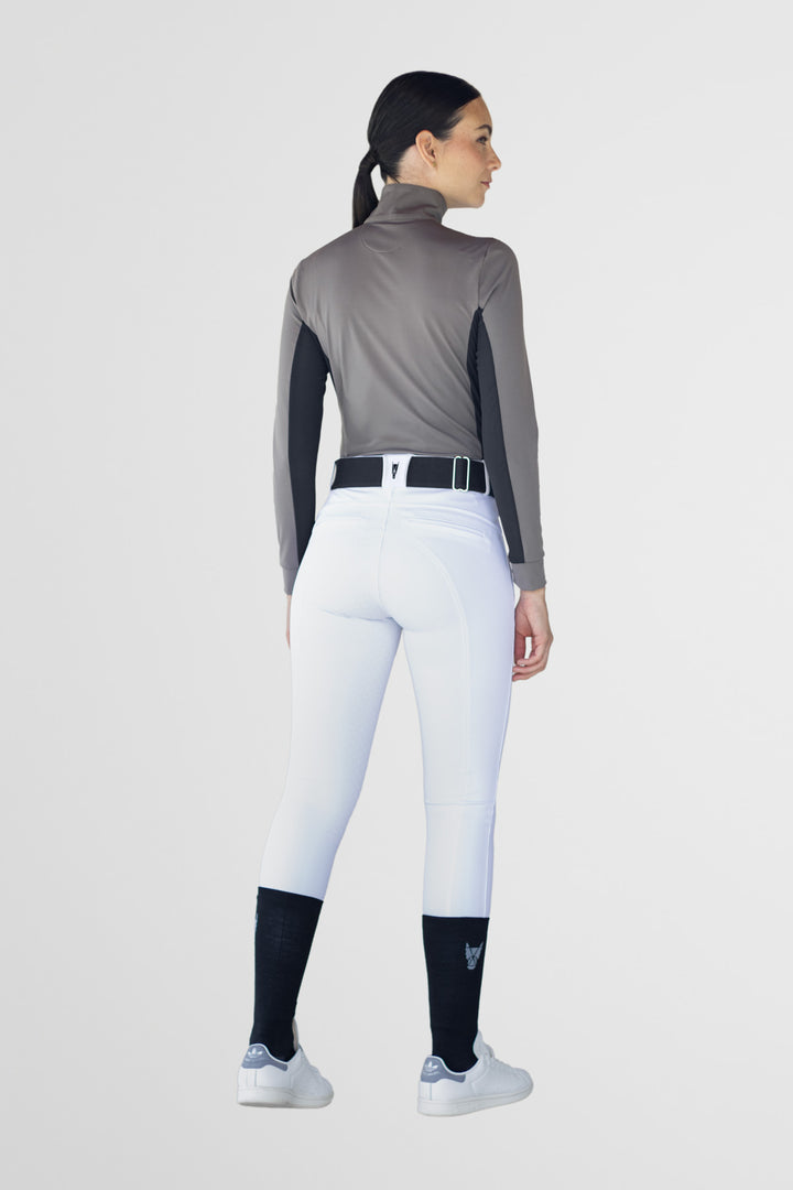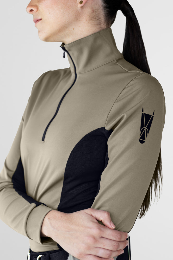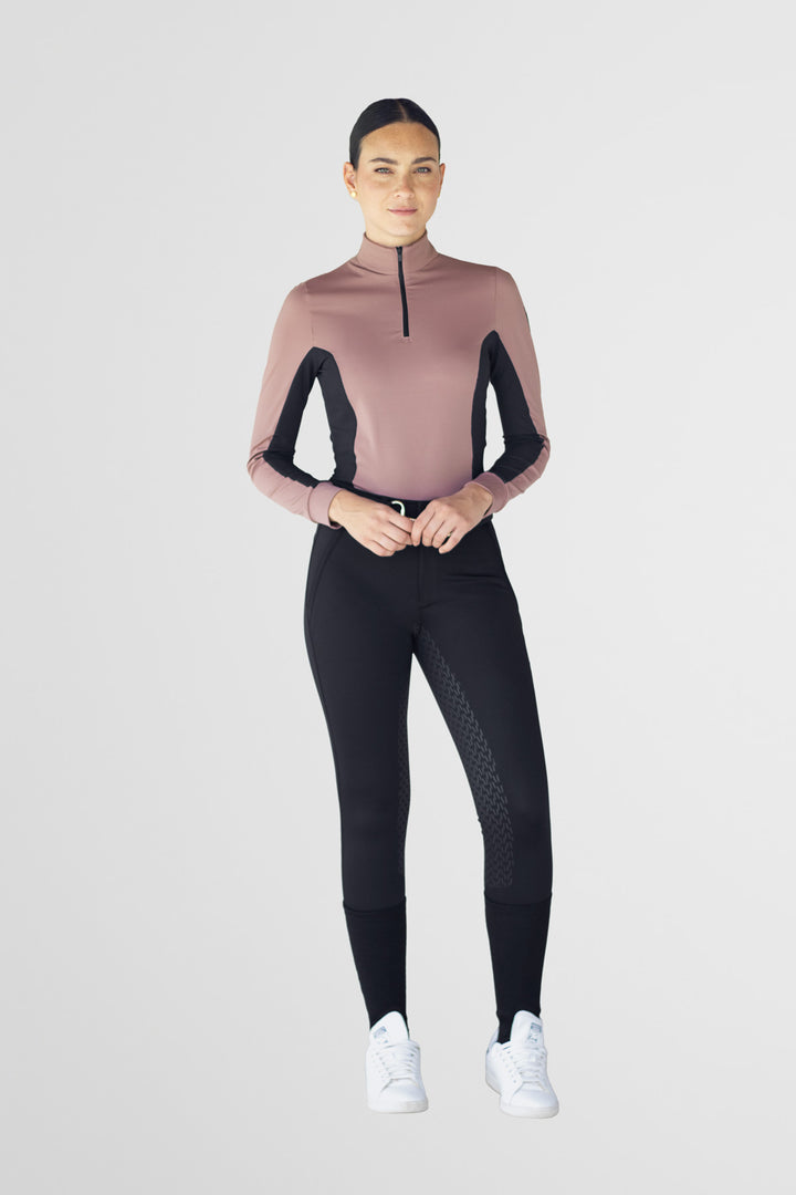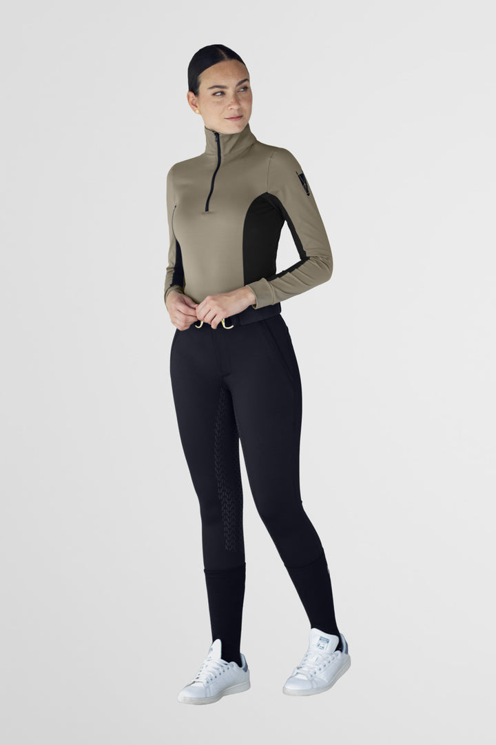 Camiseta manga larga de cuello alto, elaborada en tela con alta tecnología que proporciona flexibilidad, comodidad y protección al jinete durante los entrenamientos.
