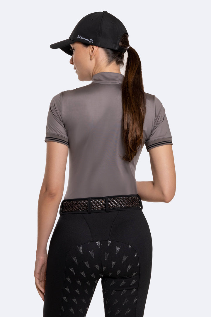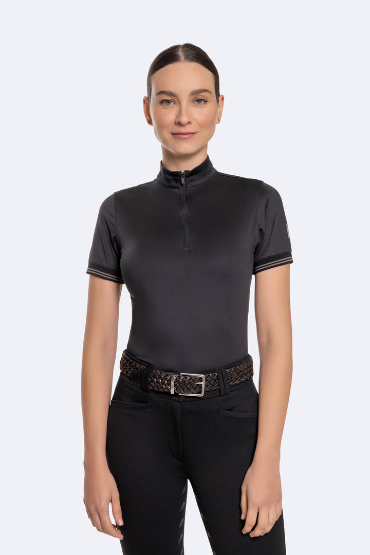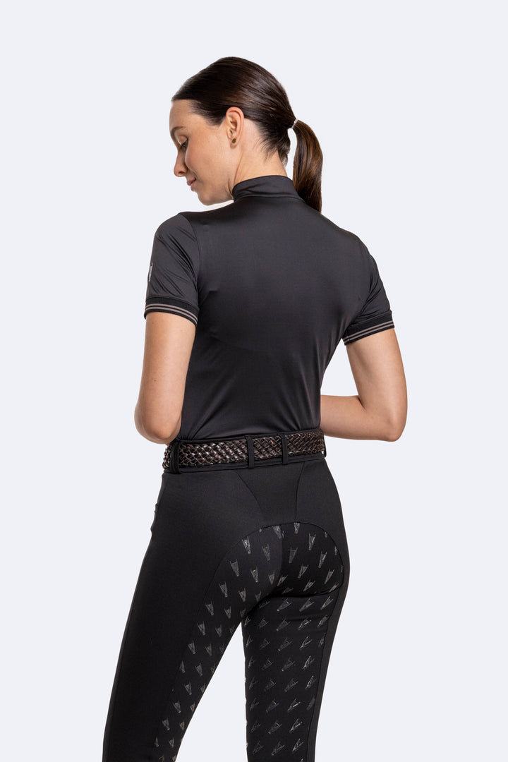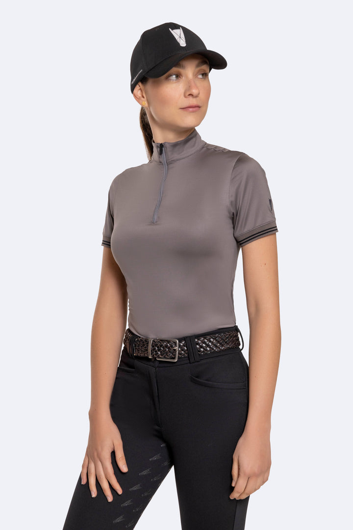 Camiseta manga corta de cuello alto, elaborada en tela con alta tecnología que proporciona flexibilidad, comodidad y protección al jinete durante los entrenamientos.