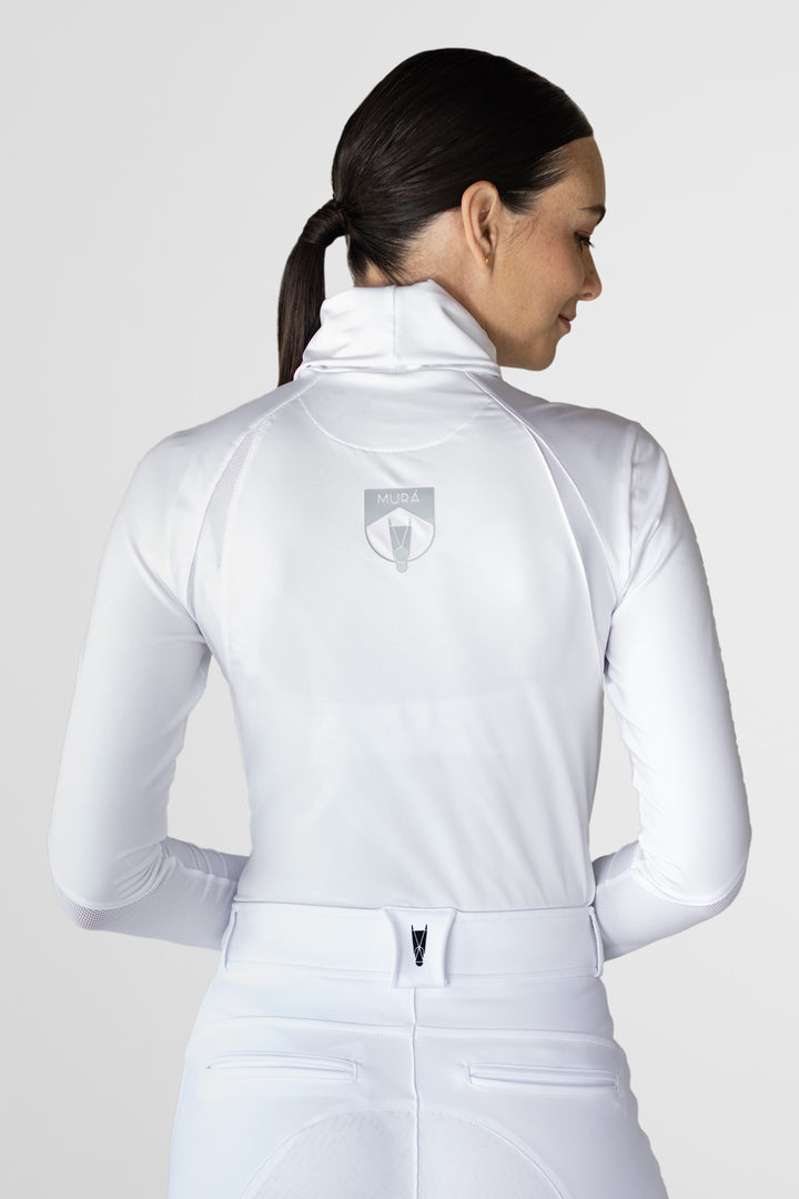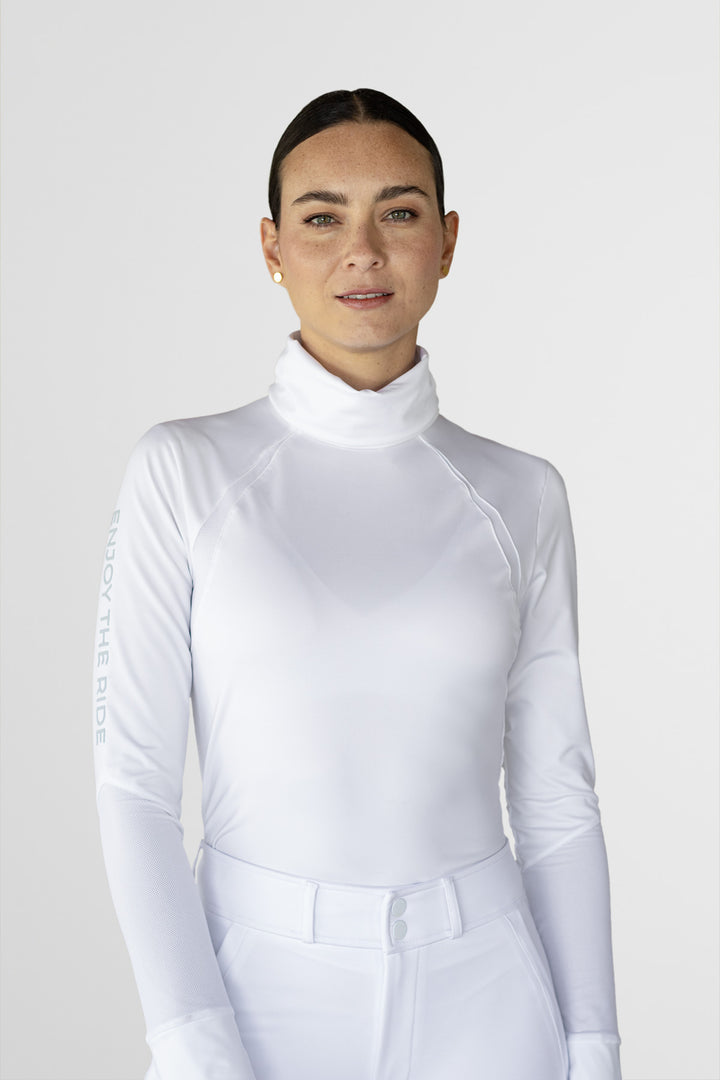 Camiseta manga larga de cuello alto, elaborada en tela con alta tecnología que proporciona flexibilidad, comodidad y protección al jinete durante los entrenamientos.
